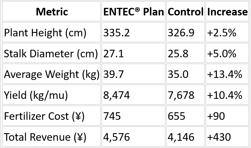 SPAD readings (chlorophyll content) were higher in ENTEC® plots, indicating enhanced photosynthesis and more energy for growth.