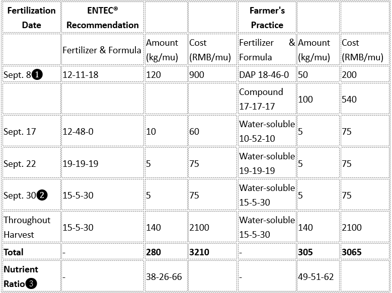 Table 1: Fertilization Scheme Comparison