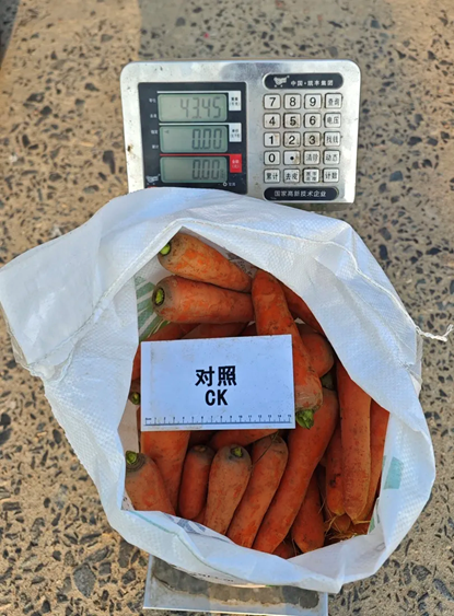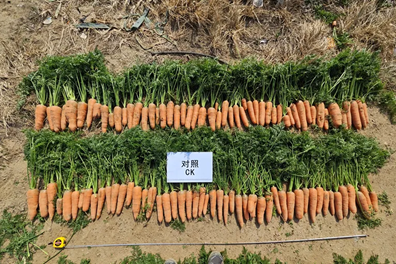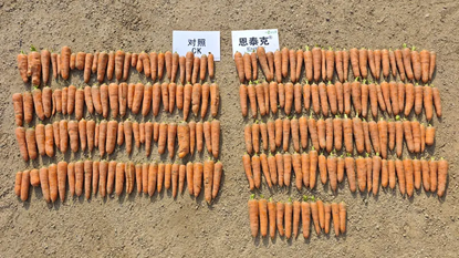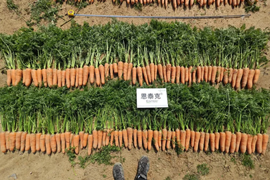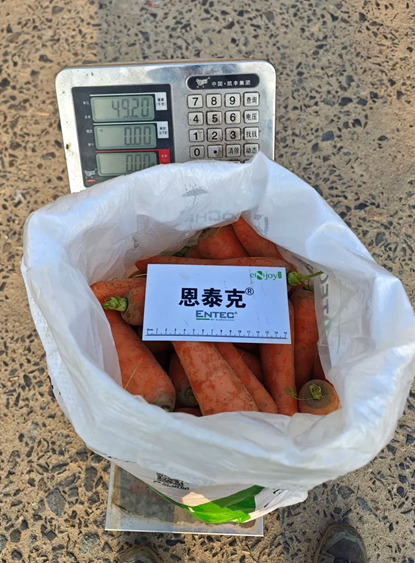 恩泰克®示范区的叶片逐渐老化但不早萎。采收后的胡萝卜根部大小均匀,品质优良,产量高。