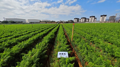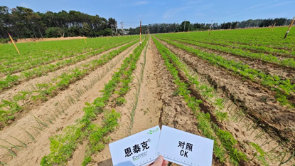 恩泰克®示范区的胡萝卜地面长势更为旺盛且均匀,更好的为地下肉质根的膨大提供养分支持。