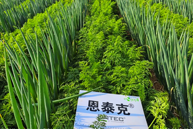 恩泰克®示范区的胡萝卜叶片生长迅速,植株粗壮,叶片肥厚,叶色浓绿。