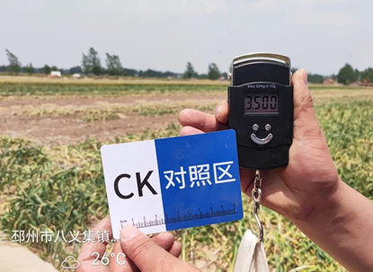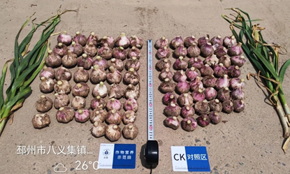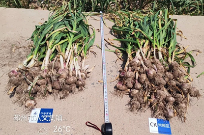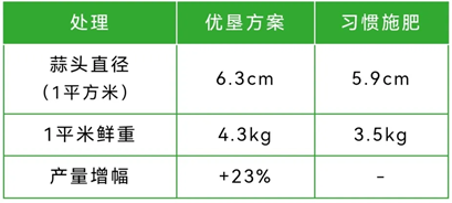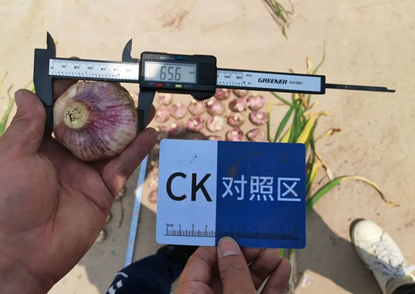 随机测量40个蒜头,优垦®组平均直径6.3cm,对照组仅5.9cm。